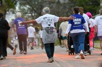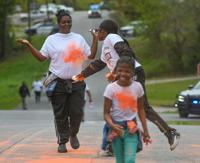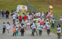 Hundreds of people all dressed in white, excited to dirty up their clothing for a good cause. A crowd gathered together at Dadeville High School to participate in the first annual Color Run, with all proceeds going to the track and field team. Runners, walkers and furry friends alike all followed the course to be met with members of the track team splashing color on them.
