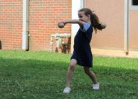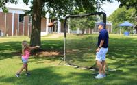 Kids throw the baseball into a net as Athletic Director and Assistant Softball Coach Steve Lewis scans the speed.