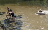 After leaving the school the parade traveled down Main Street closing down a state highway as students circled around town. Seniors then broke rank from the parade as they turned onto Chapman Road. Some sprinted to the pond and dove right in. Others just got their knees wait.Â
