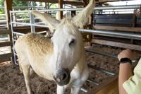 Cliff Williams / The Herald Casper the donkey has quickly turned into a mascot for Bar J Farms. The farm recently started offering beef at its Casper Meat Market. On Saturdays customers can meet Casper.