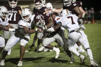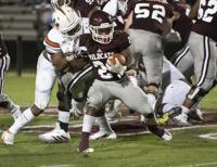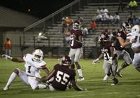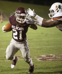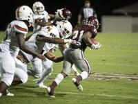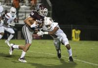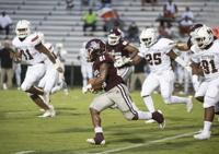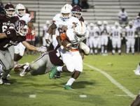 Cliff Williams / The Outlook Ben Russell running back DeMarcus McNeal runs against Huffman Friday at the Charles E. Bailey Sportplex.