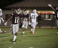 Cliff Williams / The Outlook Ben Russell running back DeMarcus McNeal celebrates a touchdown against Huffman Friday at the Charles E. Bailey Sportplex.