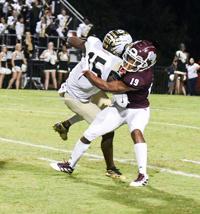 Lizi Arbogast / The Outlook Wetumpka's Terrance Thomas (1) catches a pass in front of Benjamin Russell's Anthony Journey.