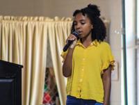 Dadeville Elementary student Paris Crayton sings the National Anthem for the Veterans Day program.