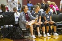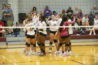 Cliff Williams / The Herald The Elmore County volleyball team huddles up against Benjamin Russell.