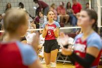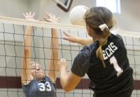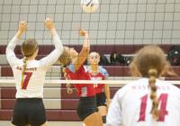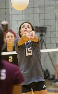 Cliff Williams / The Herald Horseshoe Bend’s Lily Moss (4) sets against Stanhope Elmore.