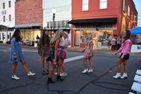 Emma Culligan (second right) and Hallie Gordon model clothing from Downtown Girl. Lake Martin Area United Way and Main Street Alexander City co-hosted a downtown fashion show Thursday to benefit local United Way agencies.