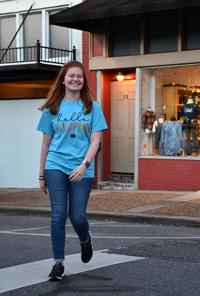 Sarah Brown models a T-shirt from Unlimited Designs. Lake Martin Area United Way and Main Street Alexander City co-hosted a downtown fashion show Thursday to benefit local United Way agencies.