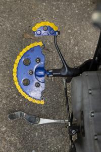 Cliff Williams / The Herald Tracy Metcalf, a Navy veteran, cut gears and chains, then welded them to create the pedals of his motorcycle.