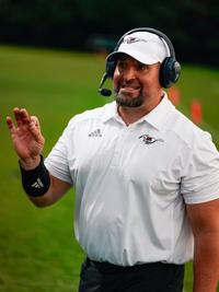Jake Arthur/ Wetumpka Herald Stanhope Elmore head coach Hunter Adams during an AHSAA football game between the Stanhope Elmore Mustangs and the Selma Saints at Stanhope High School in Millbrook, Ala on Friday, Aug. 20, 2021. Stanhope won the game 37-0. [Alex City Outlook/ Jake Arthur]