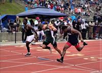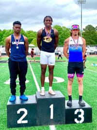 [Courtesy Photo/AHSAA] Class 3A 100-Meter Dash Has Photo Finish with Phil Dowdell of Dadeville, far left, nipping Flomaton’s Jaxon Fulmer and Mobile Christian’s Michael Moore at the finish line.