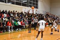 Dadeville's Phil Dowdell goes airborne for a huge dunk against Beauregard on Jan. 5, 2023.