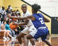 Lizi Arbogast / The Outlook Dadeville's Phil Dowdell is defended by Central Coosa's Dequalon Thomas (2).
