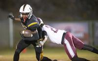 Lizi Arbogast / The Outlook Dadeville's Phil Dowdell (20) is defended by Benjamin Russell's Qua Howell.