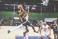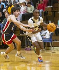 Phil Dowdell rises for a dunk against Beulah on Jan. 17, 2023.