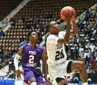 Dadeville senior Phil Dowdell goes up for a layup against Sumter Central during the AHSAA 3A regional semi-finals on Feb. 21, 2023.