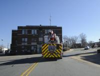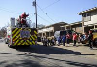 Santa traded in his sleigh and reindeer Monday as he visited Alexander City. For nearly four hours Santa rode on the back of the Alexander City Fire Department ladder truck waving and passing out gifts as employees from the Alexander City Parks and Recreation Department assisted. Santa will visit other areas of Alexander City Tuesday not covered Monday.