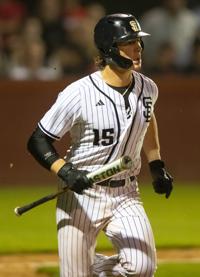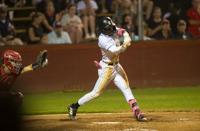 Cliff Williams / The Herald Stanhope’s Chase Williams with a hit against Spanish Fort in Game 2.