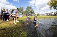 Cliff Williams / The Herald Stanhope Elmore High School held its annual homecoming parade Thursday. Seniors even took a little splash in a pond along the way.