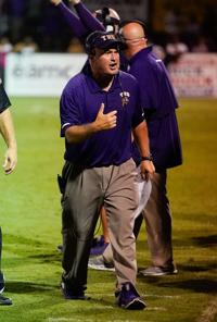 Jake Arthur/ Tallapoosa Publishers Tallassee head coach Mike Battles, Jr. celebrates a touchdown during an AHSAA football game between the Tallassee Tigers and the Reeltown Rebels at Reeltown High School in Alexander City, Ala on Thursday, Aug. 19, 2021. Tallassee won the game 34-13