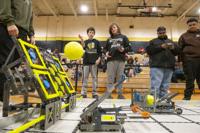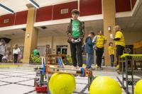 Cliff Williams / TPI Two middle school teams combined efforts to compete at the VEX Robotics IQ competition.