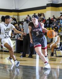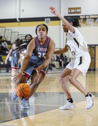 Cliff Williams / The Outlook Stanhope Elmore’s Kelbi Jackson drives against Wetumpka’s Zariah Fannin.