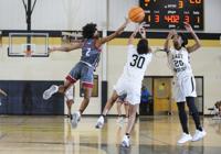 Cliff Williams / The Outlook Stanhope Elmore’s Jala McLeod goes for a rebound.