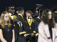 Cliff Williams / The Herald The Wetumpka High School Class of 2023 didn’t let a little rain stop their graduation. Instead they paused for an hour and let the rain pass before being honored in front of family and friends.