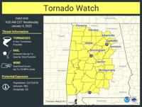 New tornado watch Submitted / The Outlook Jan 3, 2023 Jan 3, 2023 Facebook Twitter WhatsApp SMS Email Print Copy article link Save Buy Now Submitted / The Outlook Facebook Twitter WhatsApp SMS Email Print Copy article link Save Most Popular Plea deal accepted in Dadeville shooting case 2 left dead in Monday shooting Victims identified in double homicide, reward offered Two students injured in school bus crash Prattville man arrested for possession of child porn Local Weather Currently in Alexander City 67° Light Rain82° / 59° 10 PM 66° 11 PM 65° 12 AM 65° 1 AM 65° 2 AM 63°