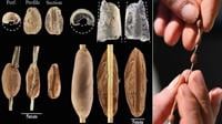 Techniques for modeling Natufian clay beads reconstructed through experimentation. Most beads were modeled directly onto plant fiber threads, while others were modeled onto wild cereal straw cores. (Laurent Davin via SWNS)