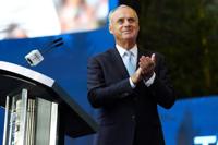 Police and private security vehicles outside the Bank of America building in Paris's chic 8th arrondissement, where a man was arrested early Saturday as he appeared to be about to set off a homemade bomb