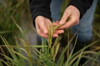 Wearing large rubber boots, Nadine Mitschunas joyfully handled mature rice plants peeking through the water of her small plot growing in the fertile soil of eastern England.