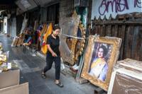 Rows of black T-shirts at a small stall hang near a banner reading "black shirts 40 baht" -- a fraction of the usual price of 200 to 500 baht ($6-15) -- drawing a steady stream of shoppers.