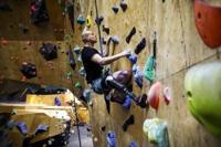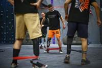 Energetic pop music blasted from speakers at a modern climbing gym in Kyiv as Ukrainian veterans stood at the foot of the wall doing burpees and crab walks, resistance bands looped around their prosthetic legs.