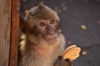 A Gibraltar macaque eating food from tourists. (Martin Nicourt via SWNS)