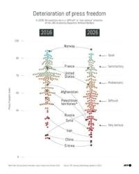 Press freedom has fallen to its lowest level in a quarter of a century, Reporters Without Borders warned on Thursday.