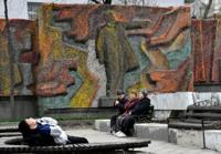 On the facade of an apartment block in Tajikistan's capital Dushanbe, a giant mosaic depicting cosmonauts and engineers celebrates the scientific triumphs of the Soviet Union.