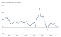 - One-year change in median sale price (2024–2025)