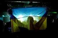 A singer emerges from the grave, his beard covered in mud, head bowed and fist raised as he extends a Ukrainian flag towards the audience: this is his entrance onstage.
