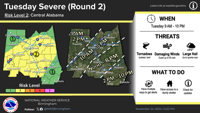 Weather Alert Severe Weather approaching Central Alabama Tuesday TPI Staff TPI Staff Author email Nov 24, 2025 Nov 24, 2025 Facebook Twitter WhatsApp SMS Email Facebook Twitter WhatsApp SMS Email Print Copy article link Save Severe weather looks to be on the way to Central Alabama. The National Weather Service issued a level two out of five risk of severe weather from 9 a.m. to 10 p.m. Tuesday. × This page requires Javascript. Javascript is required for you to be able to read premium content. Please enable it in your browser settings. kAmkDA2?m%9C62ED :?4=F56 :D@=2E65 E@C?25@6D[ 52>28:?8 H:?5D FA E@ e_ >A9 2?5 =2C86 92:= FA E@ BF2CE6C D:K6]k^DA2?mk^Am Facebook Twitter WhatsApp SMS Email Print Copy article link Save TPI Staff Author email Follow TPI Staff Close Get email notifications on {{subject}} daily! Your notification has been saved. There was a problem saving your notification. {{description}} Email notifications are only sent once a day, and only if there are new matching items. Save Manage followed notifications Close Followed notifications Please log in to use this feature Log In Don't have an account? Sign Up Today Recommended for you Most Popular Wetumpka Herald Fans Choice Player of the Week Lowndes County man held without bond for death of Tallassee woman Alex City man arrested for exposing child to meth Outlook Fans’ Choice Player of the Week Alexander City man dies in Highway 280 crash Local Weather Currently in Alexander City 44° 51° / 27° 6 PM 41° 7 PM 39° 8 PM 37° 9 PM 36° 10 PM 34°