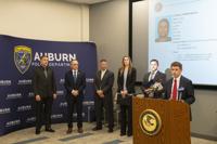 Cliff Williams / TPI U.S. Homeland Security Investigations special agent in charge Steven Schrank, right, speaks at a press conference Auburn related the execution of search warrants at 14 locations in Alabama Tuesday including Wetumpka and Holtville.