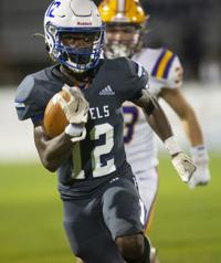 Cliff Williams / The Tribune Reeltown’s Tae Martin (12) tries to tackle Tallassee’s Christian McCary (4).