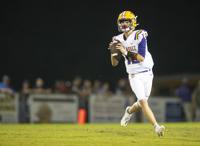 Cliff Williams / The Tribune Tallassee’s Mason Battles (12) looks to pass against Reeltown.