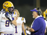 Cliff Williams / The Tribune Tallassee coach Mike Battles speaks with Eli Whittington (9) in a game against Reeltown.