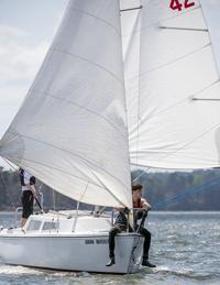 Wind in the Sails Kenneth S. Boone Apr 26, 2018 Mark Cline (left) crewed for National Champion winner Mickey Richardson during the first day of racing. Photo by Kenneth Boone