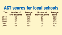 Dadeville DHS, HBHS scores drop By Katie Cole Aug 31, 2010 Students in two Tallapoosa County high schools scored lower this year on the ACT college entrance exam compared to previous years.