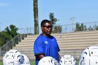Shundell Russaw speaks to his team during practice. September 14, 2022.