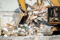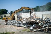Contractors tear down portions of the old Alabama Food Group building Monday morning as part of a demolition grant program to clean up dilapid…