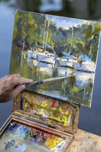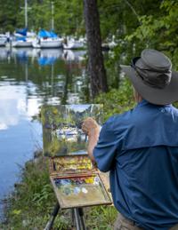 Lake Locals Featured Talking Art Kenneth Boone Jun 12, 2024 Elizabeth French set up on the bank to paint after Barnes' demonstration Buy Now