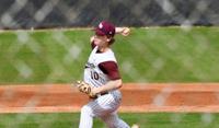 Kendrick Byrd makes solid contact against Hillcrest during Game 1 of the playoff series between the Patriots and the Wildcats. April 21, 2023.